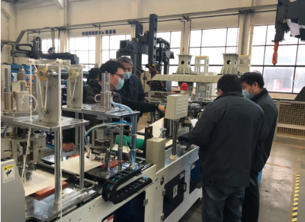 作為生產供貨單位,為了以最快速度擴大產能,八院鵬力科技集團黨支部組織成立“黨員突擊隊”,24小時無間歇輪班工作,帶頭加班加點投入專項任務研制生產。八院鵬力科技集團僅用11天就完成N95口罩機、平面口罩機和壓條機樣機研制,僅15天就實現了量產設備的連續供貨。科研團隊正確處理抓質量、促進度的關系,按照軍工產品質量要求,確保交付產品質量過硬。
