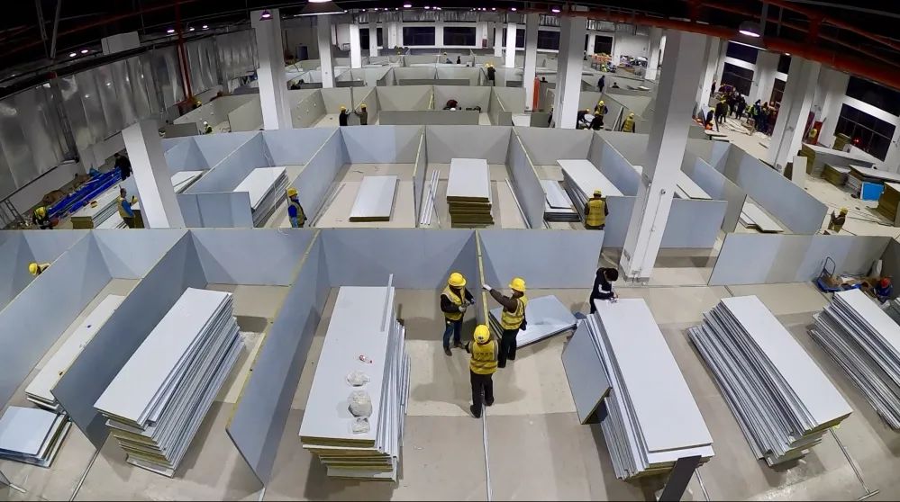 3月16日以來,長興島疫情態勢持續嚴峻?!拔萋┢赀B夜雨”,持續4天的大風大雨和氣溫驟降更增加了工作難度。用最短的時間建設成收治觀察點,就是與病毒賽跑?!霸缫恍r建成,就能少一批感染,多救一批病人”,本著這樣的目標和信念,項目組爭分奪秒,連續作戰。