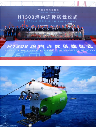 2020年,中國船舶集團在科技創新方面取得重要突破,核心競爭力持續提升?!皧^斗者”號載人潛水器在馬里亞納海溝10909米處成功坐底,實現了中國載人深潛首次萬米突破;船用低速機工程原理樣機、工程樣機、關重件樣件試驗驗證取得新成果;與廣東省簽訂船舶LNG動力改造項目合作框架協議。在持續推進自主可控工程與關鍵核心技術攻關方面,中國船舶集團承擔多項攻關任務實現關鍵核心技術突破。在軍民品科研開發、先進制造技術研發應用、科技創新基礎夯實方面,中國船舶集團也開展了大量工作,并取得顯著成效。