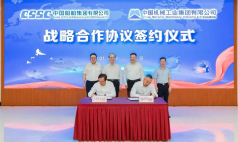 6月22日,中國(guó)船舶集團(tuán)有限公司與中國(guó)機(jī)械工業(yè)集團(tuán)有限公司在京簽署了戰(zhàn)略合作協(xié)議。中國(guó)船舶集團(tuán)黨組書記、董事長(zhǎng)雷凡培,黨組副書記、總經(jīng)理?xiàng)罱鸪桑h組成員、副總經(jīng)理錢建平,國(guó)機(jī)集團(tuán)黨委書記、董事長(zhǎng)張曉侖,黨委副書記、總經(jīng)理吳永杰,黨委常委、副總經(jīng)理白紹桐出席了簽約儀式。楊金成、吳永杰分別代表雙方簽約。