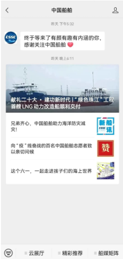 近日,中國船舶集團(tuán)四大云展廳入駐集團(tuán)公司微信公眾號。