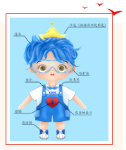 設(shè)計說明:圍繞“愛在深藍”志愿服務(wù)為主題設(shè)計了一名小男孩IP形象,深藍色的發(fā)色呼應(yīng)主題。紅色的帽子和三角巾突出志愿服務(wù)的形象與船舶青年熱血有愛志愿精神。雪白的T恤在胸口印有“愛在深藍”品牌LOGO,彰顯小男孩的身份與純潔進步的“艦船報國、向海圖強”的船舶青年志向。可愛且色塊明顯的IP形象設(shè)計,通過紅藍撞色使IP形象更具有吸引力。小男孩形象設(shè)計簡潔,方便進行后期表情包、日歷、書簽等2D周邊設(shè)計,與3D實物生產(chǎn)。