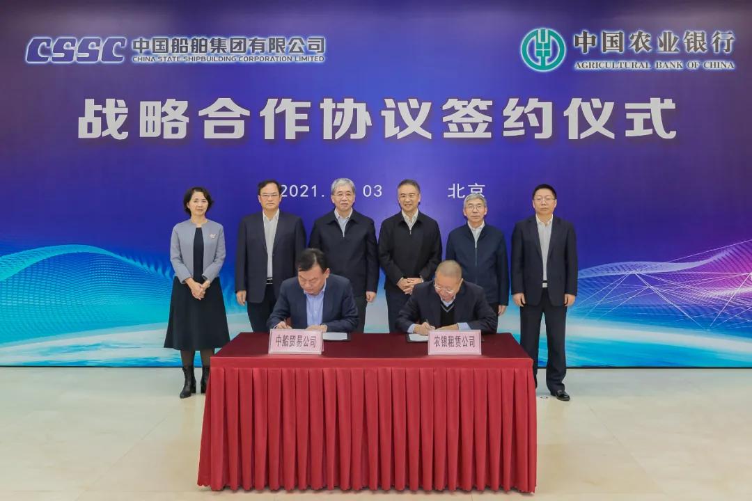會(huì)上,在雙方領(lǐng)導(dǎo)的共同見(jiàn)證下,中國(guó)船舶集團(tuán)旗下中船貿(mào)易與農(nóng)業(yè)銀行農(nóng)銀租賃簽署相關(guān)合作協(xié)議。