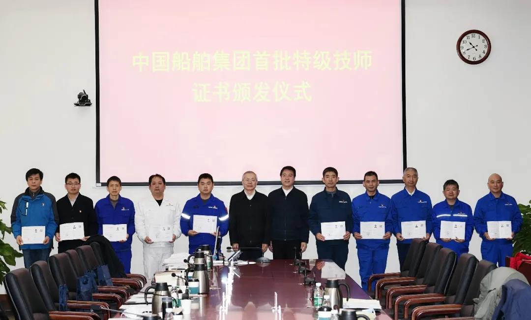 1月14日,人力資源和社會保障部黨組成員、副部長湯濤一行就技能人才隊伍建設和特級技師認定試點工作到中國船舶集團有限公司開展專題調研,并與中國船舶集團黨組副書記、董事杜剛共同為集團公司評出的國家首批特級技師代表頒發證書。