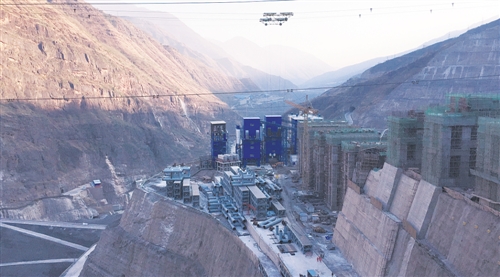 正在施工中的白鶴灘水電站主壩區(qū)域