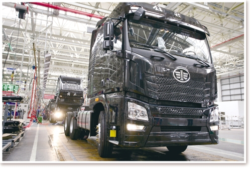 圖為一汽解放青島總裝生產(chǎn)線。 (資料照片)