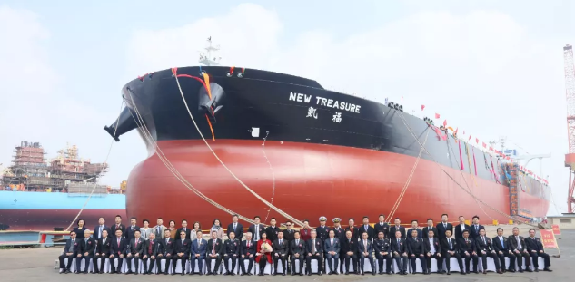 ????11月8日,大船集團為招商輪船建造的30萬噸超大型油船(VLCC)“凱?!碧柡炞纸还?。