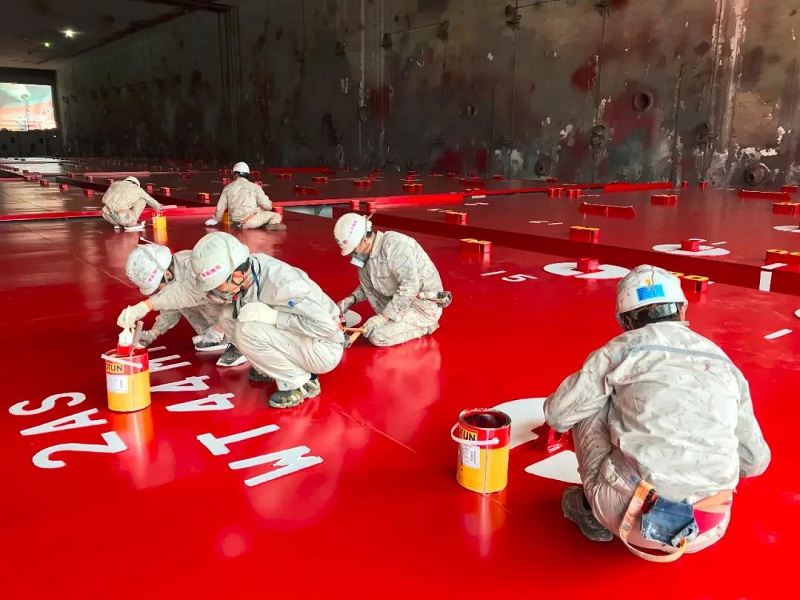 ????H1473船艙口蓋采用特殊油漆,噴涂尤為講究——只有保證在75微米~100微米區間內才算合格,厚度就跟一根頭發絲一樣。并且,在噴涂的過程中需要及時檢驗,一旦冷卻后再發現過薄或者過厚的問題,都需要從沖砂開始重頭再來。這一任務不僅是時間緊張,工藝、難度都是一座高山“壓”在涂裝二部職工身上。