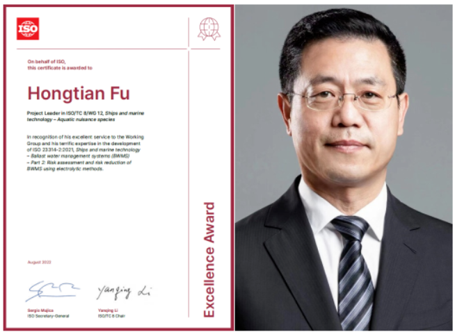 ISO卓越貢獻(xiàn)獎(jiǎng)旨在表彰在上一年度ISO國(guó)際標(biāo)準(zhǔn)制修訂工作中作出突出貢獻(xiàn)的專家、項(xiàng)目負(fù)責(zé)人或工作組召集人。此次頒獎(jiǎng)表彰了付洪田在ISO 23314-2:2021《船舶與海洋技術(shù)—壓載水管理系統(tǒng)—電解法壓載水管理系統(tǒng)的風(fēng)險(xiǎn)評(píng)估與風(fēng)險(xiǎn)降低》國(guó)際標(biāo)準(zhǔn)研制作出的貢獻(xiàn)。