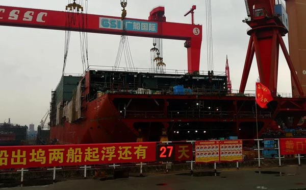 廣船國際建造的豪華客滾船完成3個艉跳板的裝焊任務