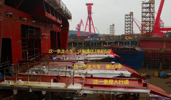 其次,大車停在3甲車庫,小車停在5甲車庫,可使船舶的重心會更低、整體更穩,最重要的是還考慮到港口條件進行了量身定做。