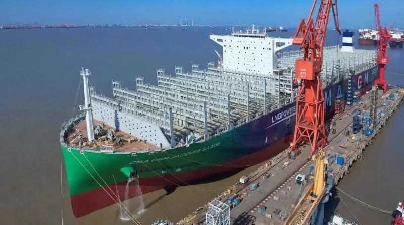 ????3月16日,中國(guó)船舶集團(tuán)所屬滬東中華建造的全球首艘23000箱液化天然氣(LNG)動(dòng)力集裝箱船開啟了常規(guī)試航之旅。該超大型LNG動(dòng)力集裝箱船總長(zhǎng)400米,型寬61.3米,服務(wù)航速22節(jié),載重量近22萬(wàn)噸,被業(yè)界形容為“綠巨人”;采用了一顆獨(dú)一無(wú)二的“綠色心臟”——一個(gè)18600立方米的MK Ⅲ薄膜式燃料艙,能滿足全球最嚴(yán)格排放要求。