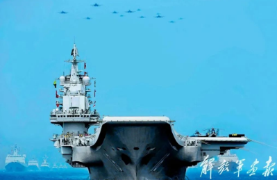 遼寧艦官兵在甲板上排出“中國夢,強軍夢”字樣