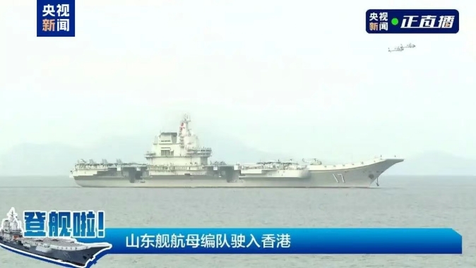 7月3日上午,中國人民解放軍海軍山東艦航母編隊抵達香港海域。