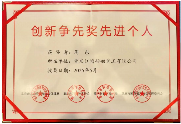 他先后榮獲中船集團(tuán)“優(yōu)秀科技工作者”“突出貢獻(xiàn)專家”“產(chǎn)業(yè)標(biāo)兵”“船舶貢獻(xiàn)獎”等多項榮譽(yù),獲集團(tuán)公司科技進(jìn)步獎一等獎、重慶市科技進(jìn)步獎三等獎、重慶市企業(yè)技術(shù)創(chuàng)新獎、重慶市造船工程學(xué)會科技成果一等獎等多項獎勵。同時是中船集團(tuán)學(xué)科帶頭人以及重慶市產(chǎn)業(yè)技術(shù)帶頭人的后備人選。作為牽頭人,他帶領(lǐng)團(tuán)隊積極爭取到“國家企業(yè)技術(shù)中心”“國家技術(shù)創(chuàng)新示范企業(yè)”等國家級創(chuàng)新平臺。