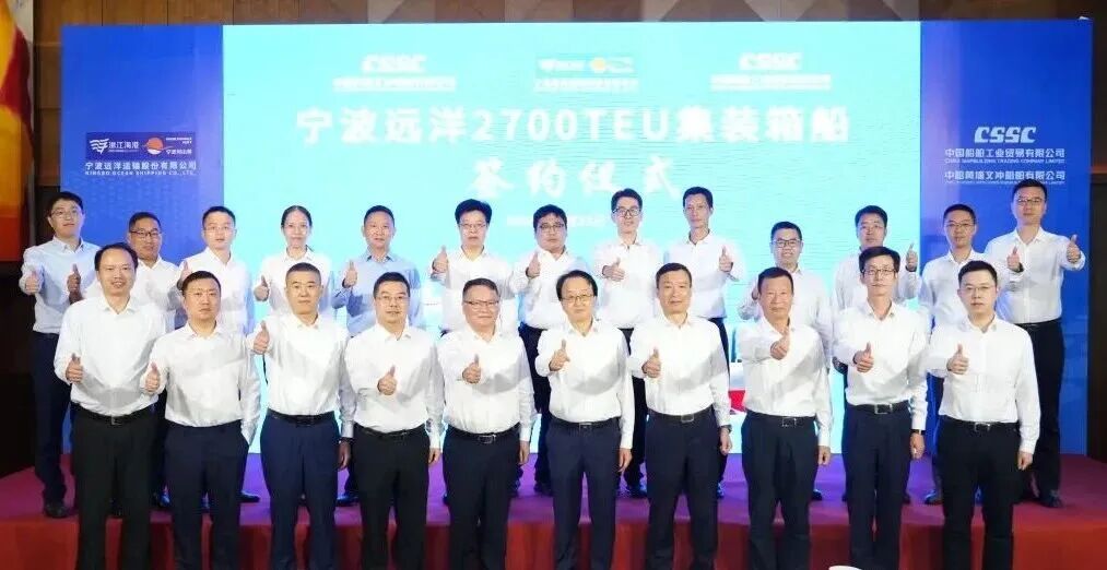 10月21日,中船集團(tuán)旗下黃埔文沖聯(lián)合中船貿(mào)易,與寧波遠(yuǎn)洋運(yùn)輸股份有限公司正式簽署4艘2700TEU集裝箱船的建造合同。此次簽約的集裝箱船均由中船集團(tuán)旗下上船院設(shè)計,采用先進(jìn)的設(shè)計理念和環(huán)保技術(shù),以滿足寧波遠(yuǎn)洋對船舶高效、經(jīng)濟(jì)、環(huán)保的要求。